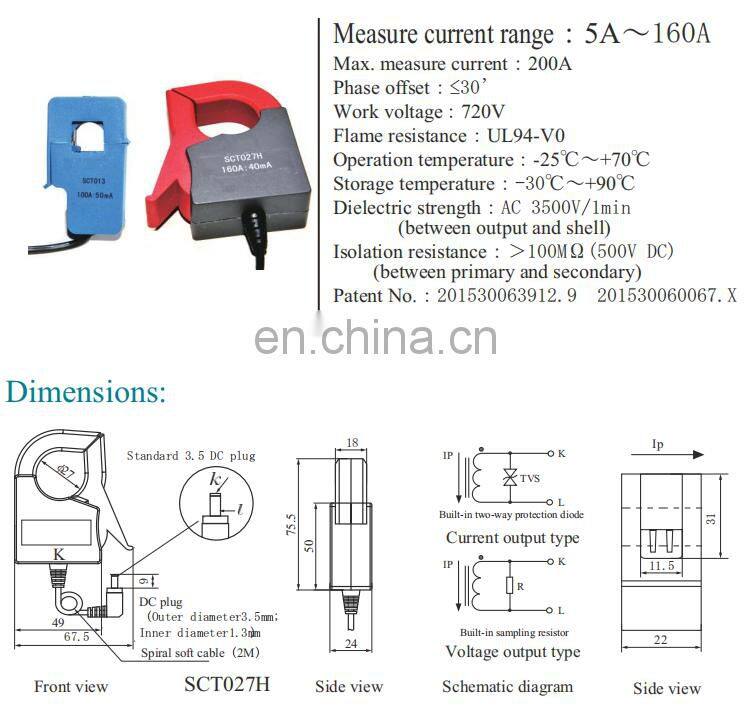 SCT 100A Hall Effect Current Sensor Current Transducer SCT Current Transformer