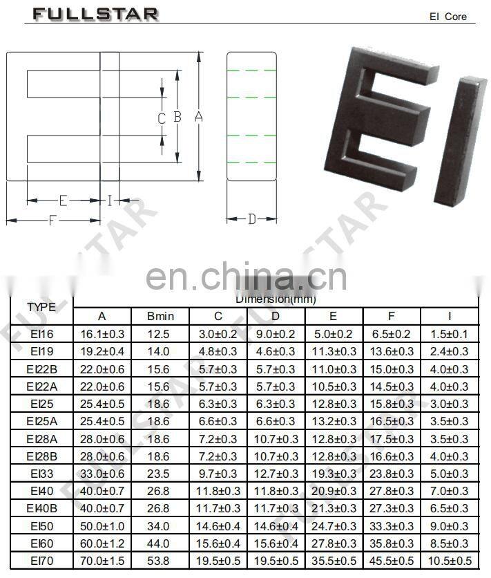 EI type soft magnetic Mn Zn ferrite core for transformer