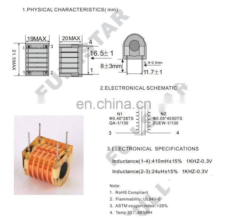 Material | Ferrite Core, bobbin, copper wire, epoxy |
