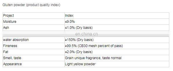The vital gluten is also known wheat gluten or gluten flour. A kind of powder products that chooses wheat flour as its raw material and then separates, extracts and dries the flour protein contained in it. The vital gluten mainly consists of gliadin and glutenin with a protein content up to more than 85%. It feathers hygroscopicity, toughness, extensibility, formability, adhesion heat coagulability and liposuction, which are not available in other kings of protein. So many unique physical properties make the vital gluten indispensable in food industry, grain industry, textile industry, paper-making industry, chemical industry and high precision feed as gluten fortifiers, and protein additives.