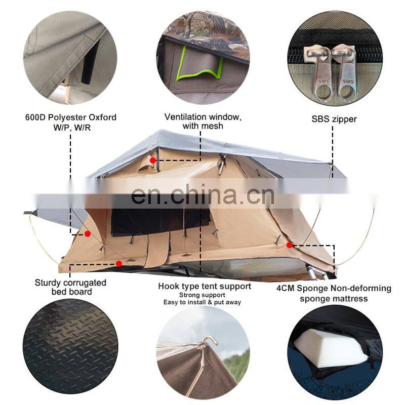 New products China manufacturer cheap wholesale double layer hard roof top tent for UniversalPolyester Oxford PU3000mm, Waterproof & Breathable |