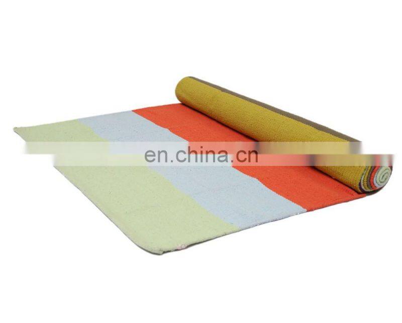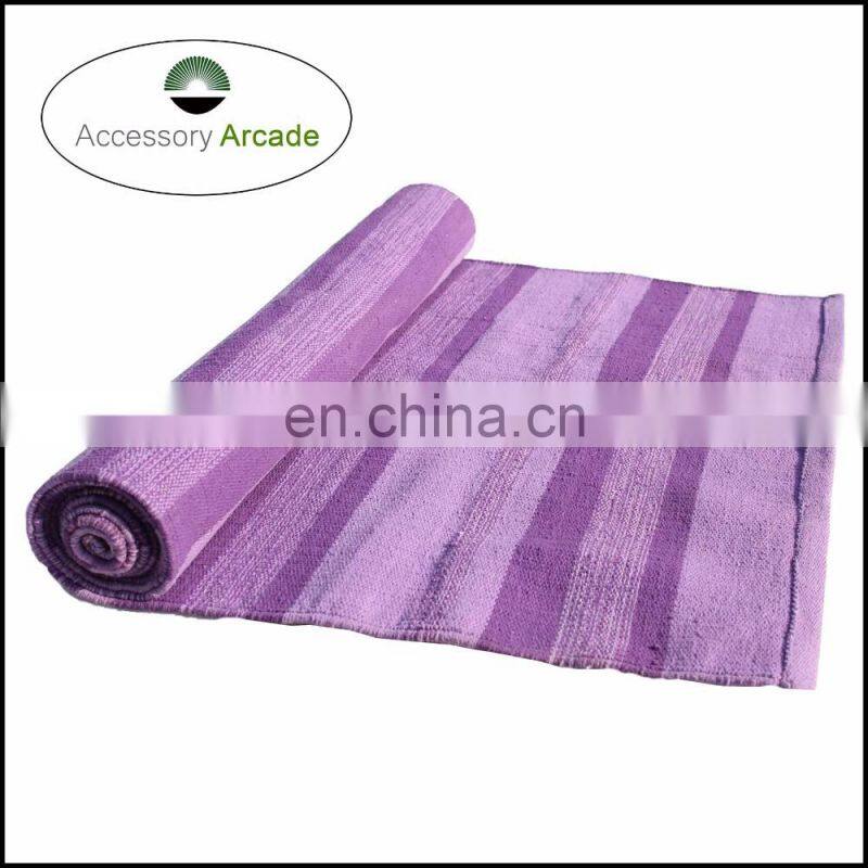 Our 100% cotton practice yoga rugs are earth friendly mats, as they are completely biodegradable and PVC free. Made from yarn-dyed cotton, these are densely woven in a traditional hand-loom pit.