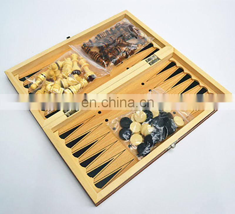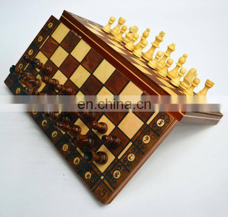 Factory Wholesale Magnetic 3 in 1 Chess Set Handmade Wooden Foldable Internal Storage Space Chess Board Game