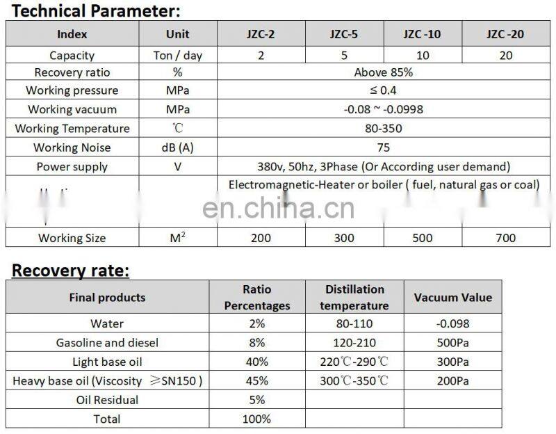 ◆ Environmental friendly, there is only 5-8% of the oil residual under the distilling kettle, which can be use as the boiler heavy fuel, so there is no pollution.