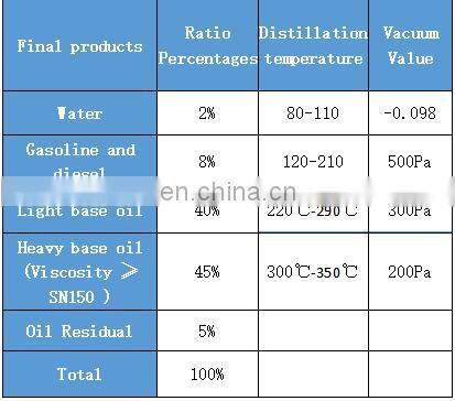 ◆ Using the special chemicals to catalyze the waste oil, which makes sure the final diesel oil, gasoline oil and base oil are good anti-oxidation with good color, there is no bad odor. The final oil can be storage for one year without color change and odor change.