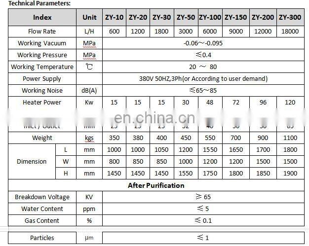 mining,metallurgy, manufacturing and other industries to purify various types of unqualified insulating oil, such as No. 10, No. 25 No.45 transformer oil, mutual inductor oil, cable oil,switch oil, etc. ZY Oil Purifier adopts Duplex-Stereo film