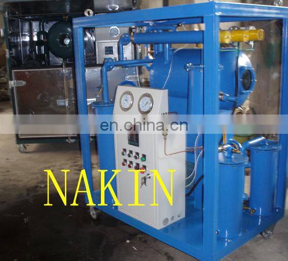 evaporationtechnology, which can quickly and effectively remove water, gas and impurities from oil under vacuum negative pressure, restore and improve the dielectric performance of the insulating oil, and effectively guarantee Power equipment operates safely. This machine can also be used for different purposes such as vacuum drying, vacuum oiling, and hot oil circulation.