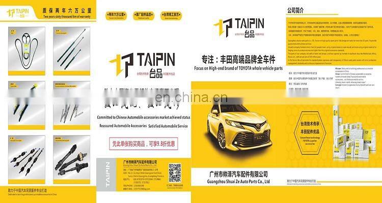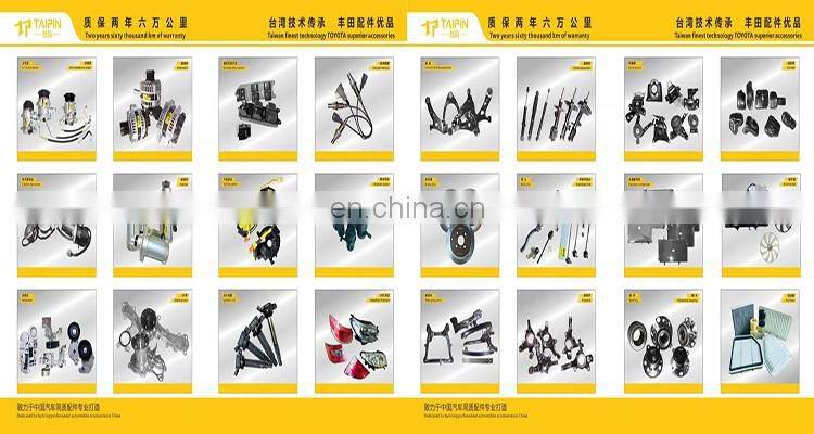 TAI PIN compny operates a variety of brand auto parts. It specializes in GAC Toyota, FAW Toyota, and all-vehicle brand parts. It comes from Taiwan's exquisite craftsmanship. We have our own multiple factories and warehouses, and the price of the products we offer is the lowest factory price.The guarantee period is two years.