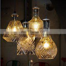 Nordic Modern Personality Glass Engraved Wine Bottle Pendant Light E27