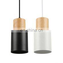 Creative Simple Wooden Pendant Light E27 Black White Iron Lamp Fixtures