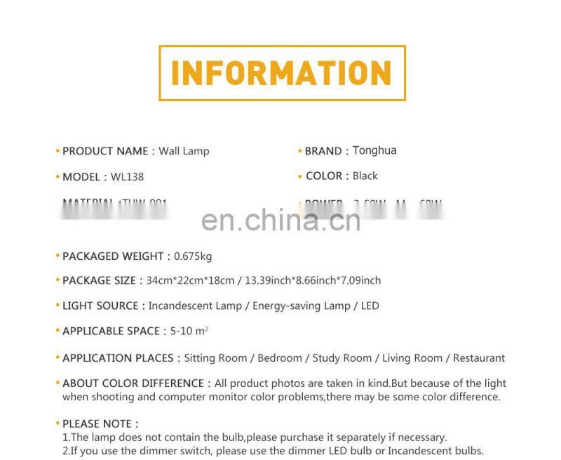 Tonghua Vintage Iron Cage Edison Filament Bulb Wall Lamp E26 E27 Lamp Holder Black Home Decor Light