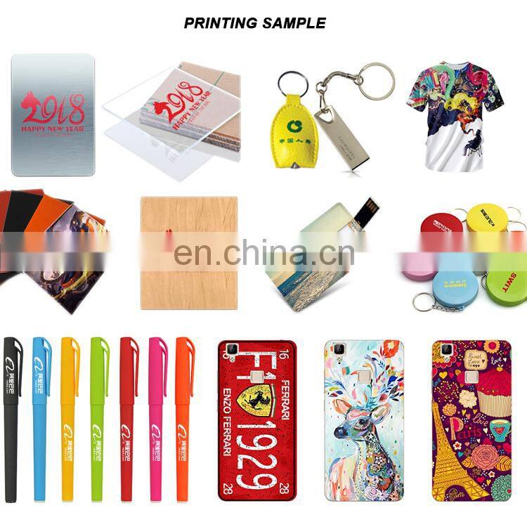 It can print on many materials such as phone case, leather, PVC, wooden, plastic, acrylic, pen, wine box, metal sheet, ceramic, glass, textile and fabrics(except UV printers), etc.