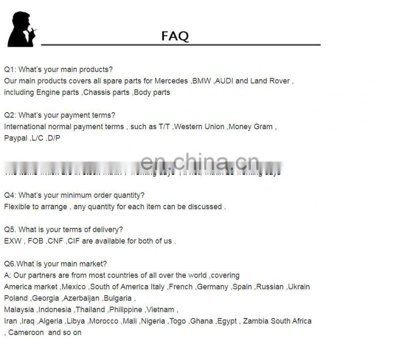 1,We integrate all sourcing of spare parts for Mercedes ,BMW ,AUDI ,Porsche, VW & Land rover in whole China .