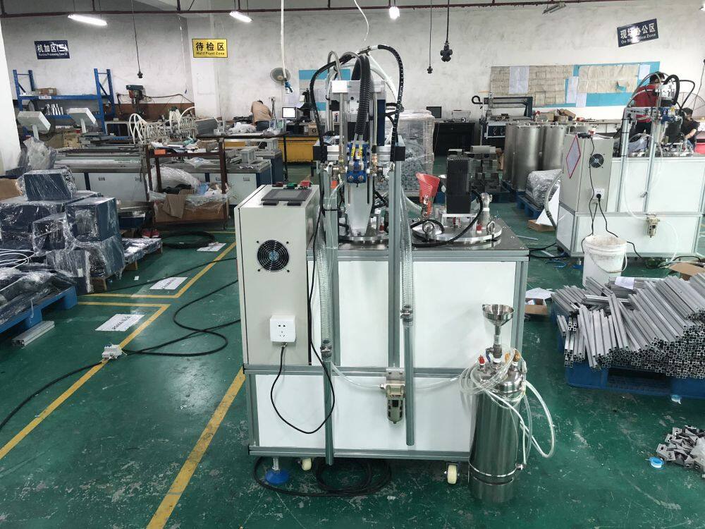 Automatic glue mixing and dispenser machine is mainly used for a two-component glue( Epoxy/ Silicone/PU,etc adhesive), automatic metering and mixing the ratio of glue. The glue are stored in two barrels separately, according the glue weight ratio and volume demand automatic metering by two sets of precision pump, supply to a mixing device fully mixing, and then potting/dispensing the desired products.