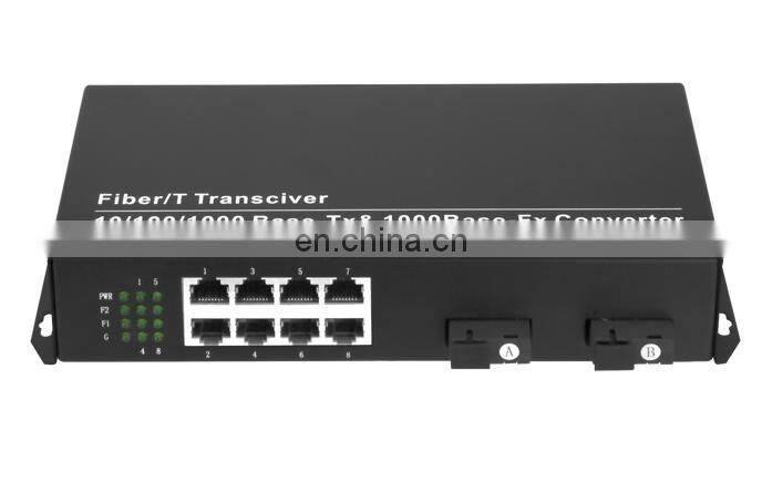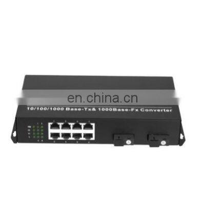 Gigabit Fiber Media Converter 10/100/1000M 2 Fiber Port +8RJ45 Port 2PO and 8LAN Port