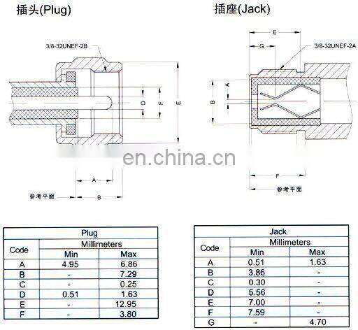 RF cable assemblies includes: RG141/RG142/RG174/ RG178/RG179/RG180/ RG187/RG196/RG213/RG214/RG218/RG219/