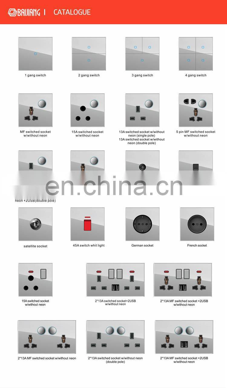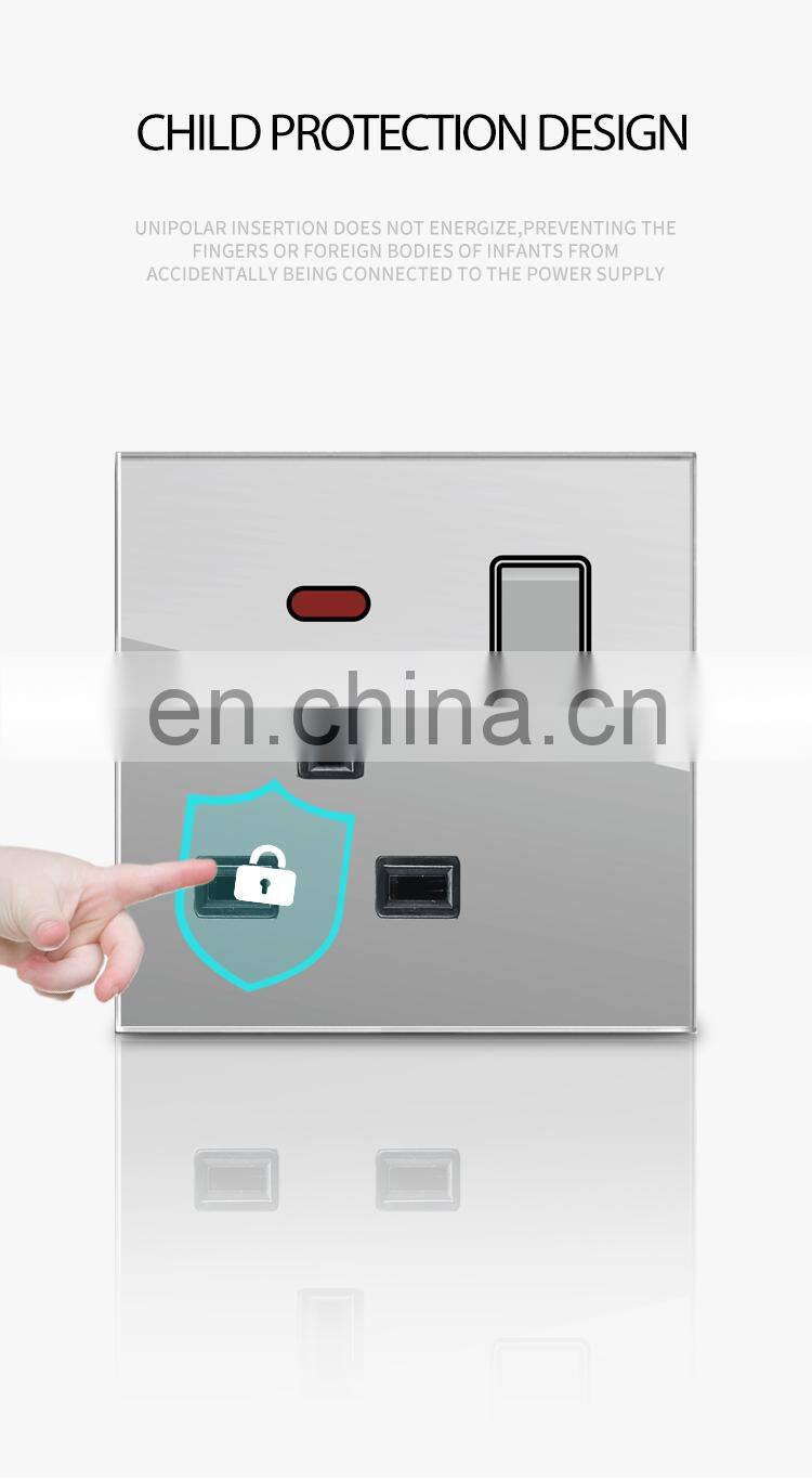 EU/UKl Standard 45A Wall Button Switch 86mm*86mm Tempered Glass Panel Socket And Switch Electrical With LED Light