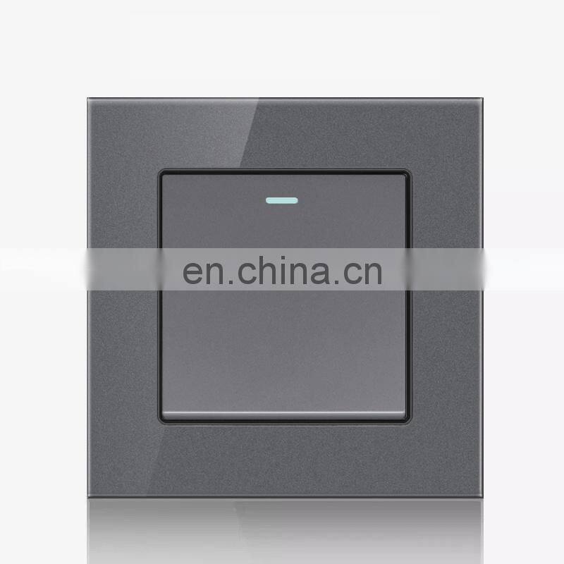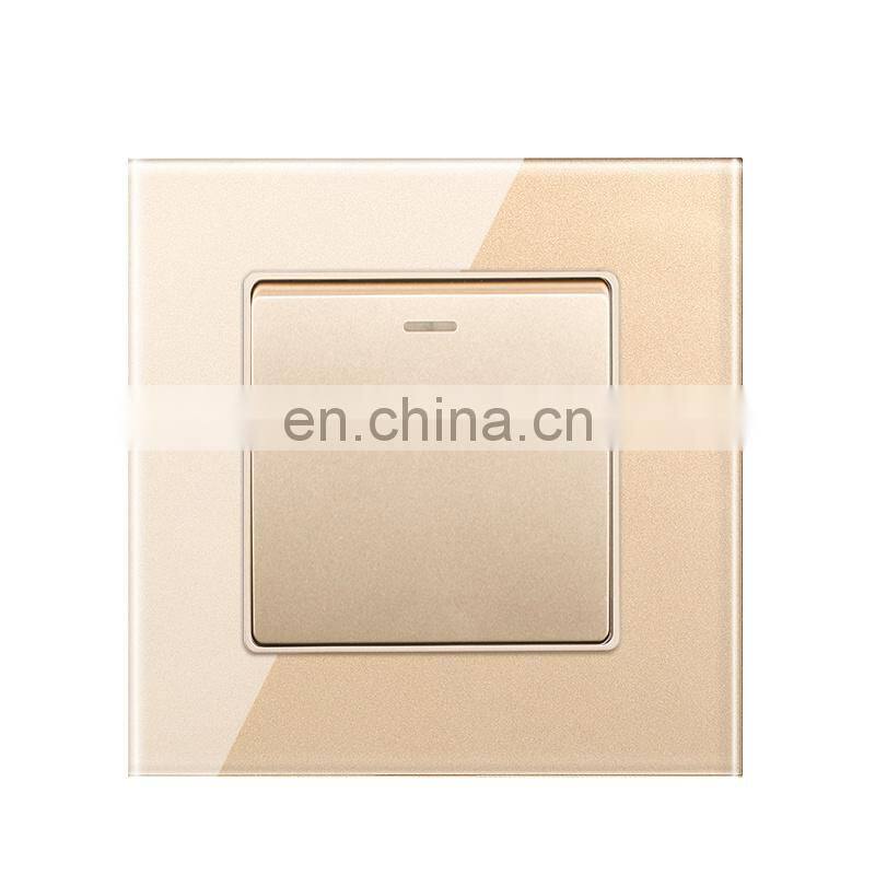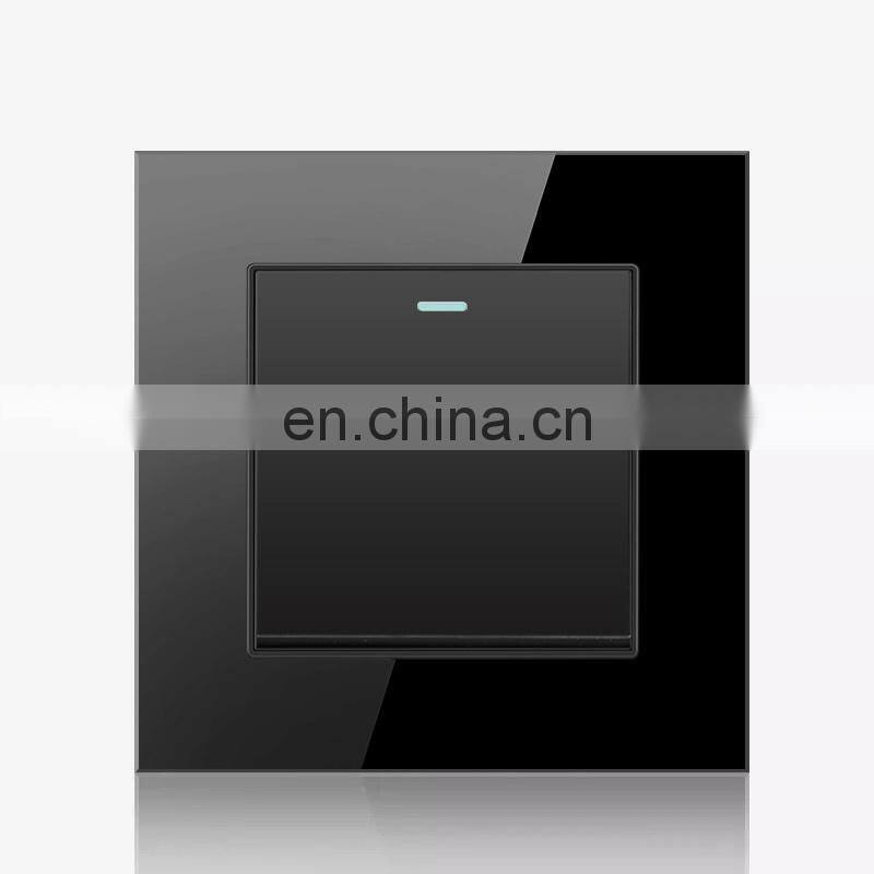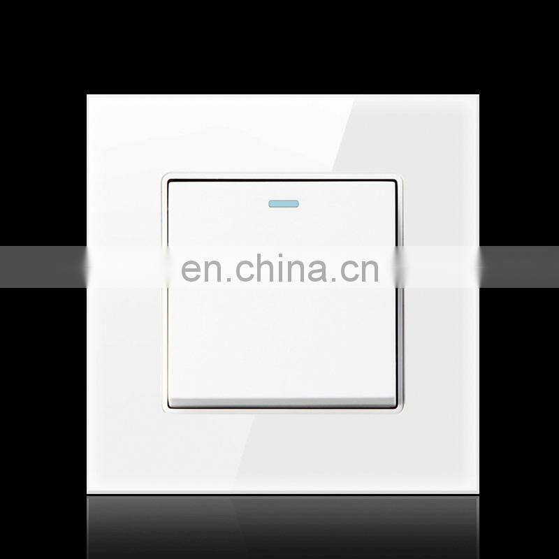 EU UK Standard Home Wall Socket Push Button On/Off Light Switch,Crystal Tempered Glass 86*86mm Wall Switch