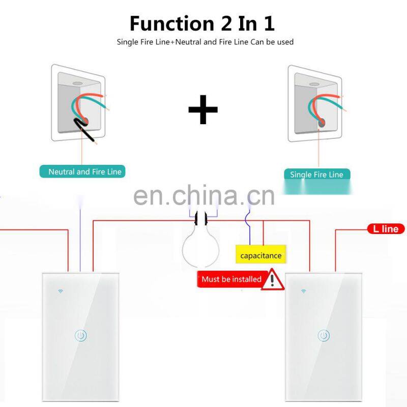 EU/UK Standard 2gangs Smart WiFi Touch Swich General Relay ,to Link a Single Live Wire a Capacitor Need be Connected in Parallel