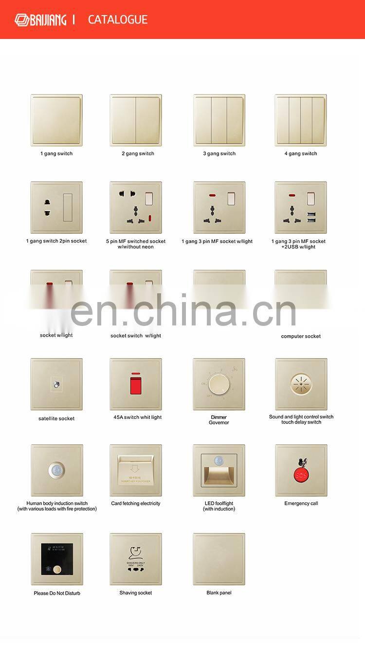 BAIJIANG UK Standard Wall Push Button Light Switch 16A Silver Alloy Contact Flame Retardant PC Sockets And Switches Electrical