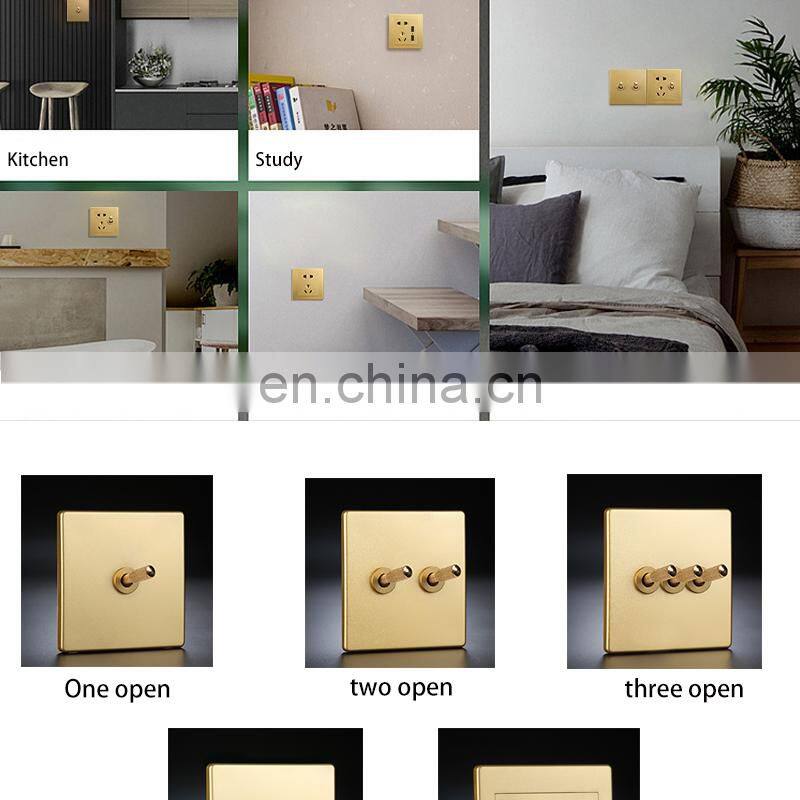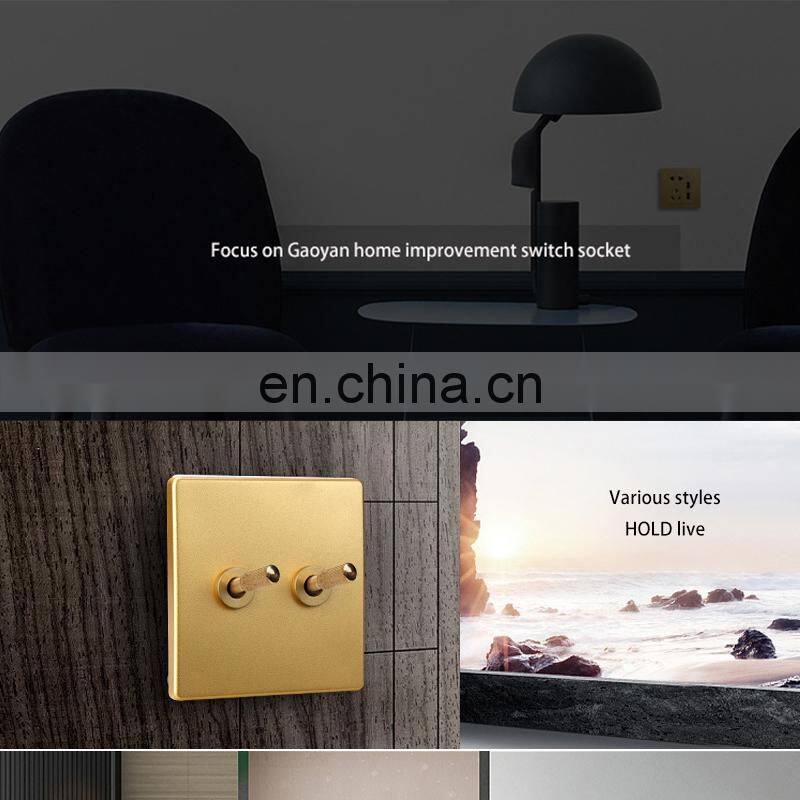Retro Gold 2 Open Nordic Minimalist Home Improvement Theme Brass Lever 86 Type Concealed Electrical Wall Switch Panel