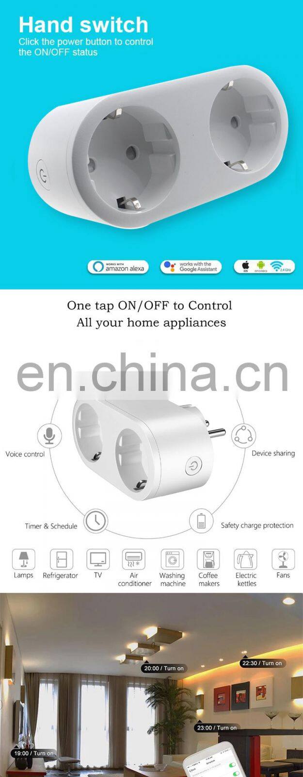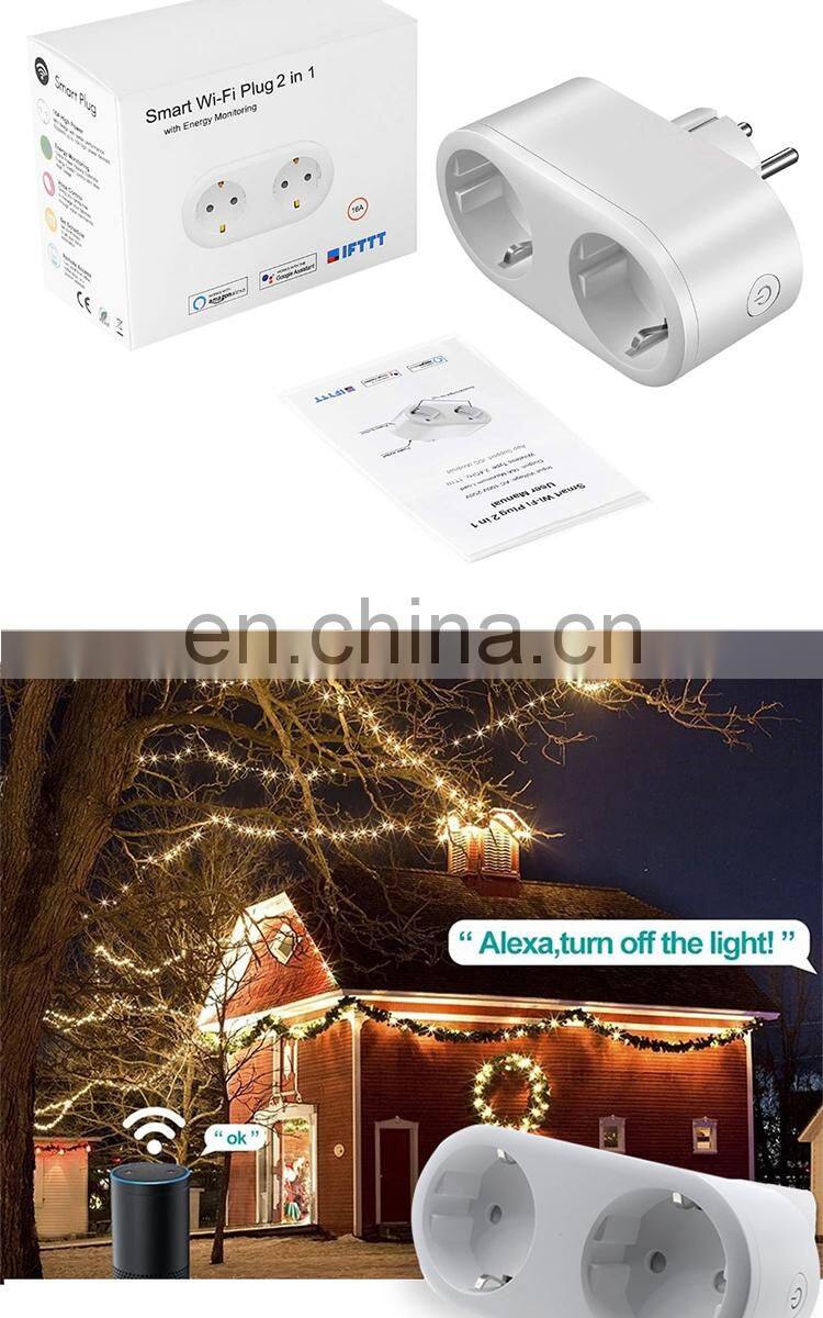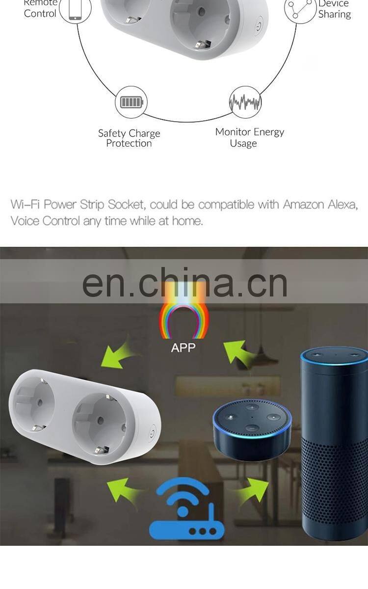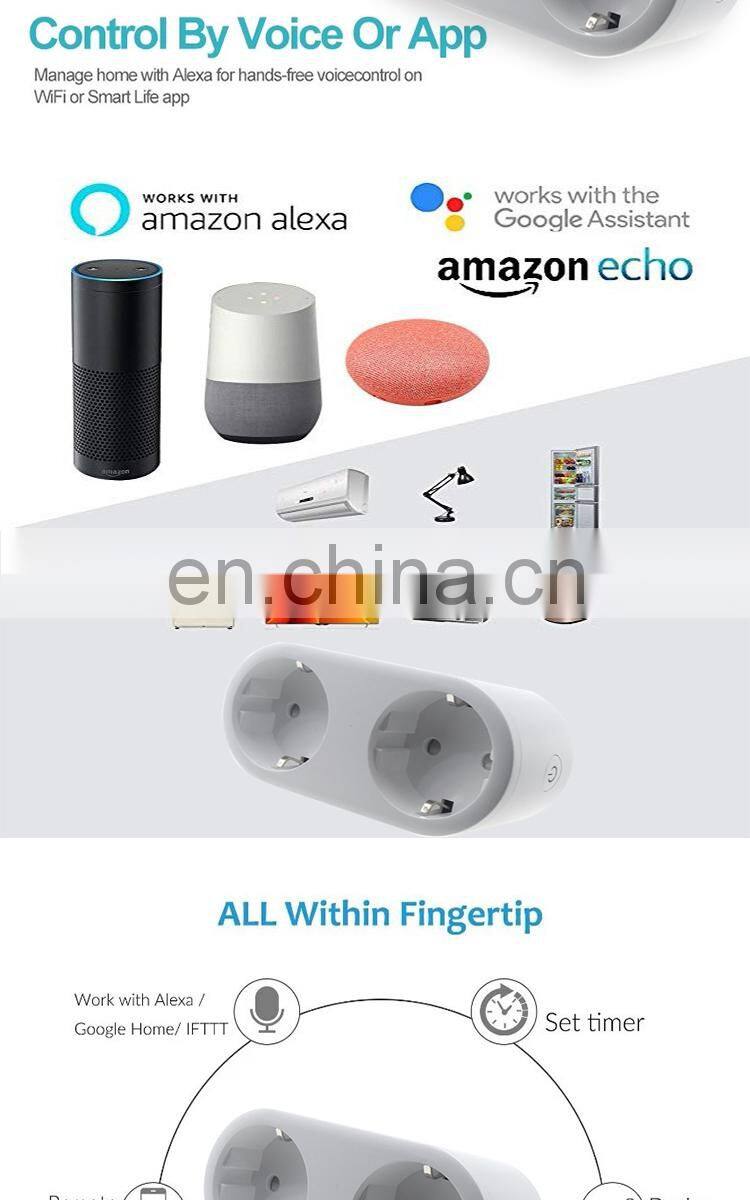 EU Standard OEM Shunt Dual Control Voice Control Timing Switch Smart Life Smart Socket WiFi Smart Socket