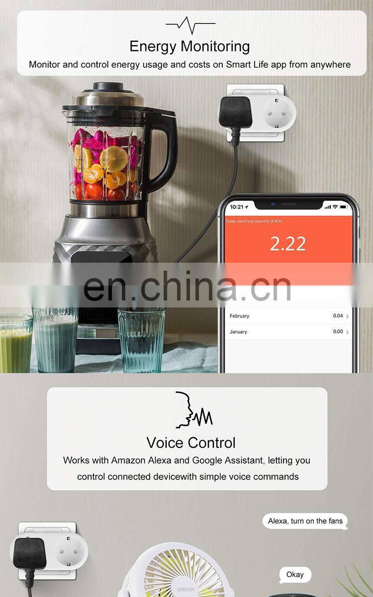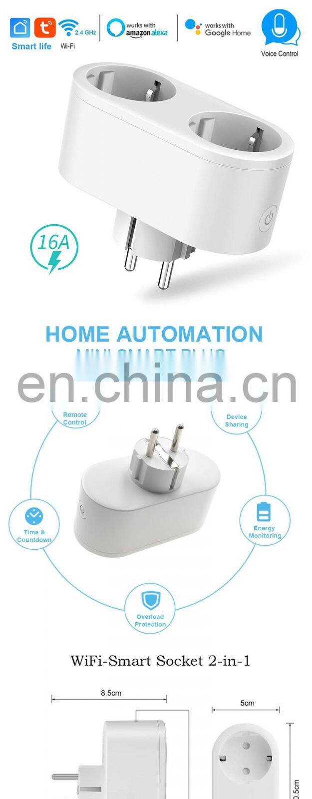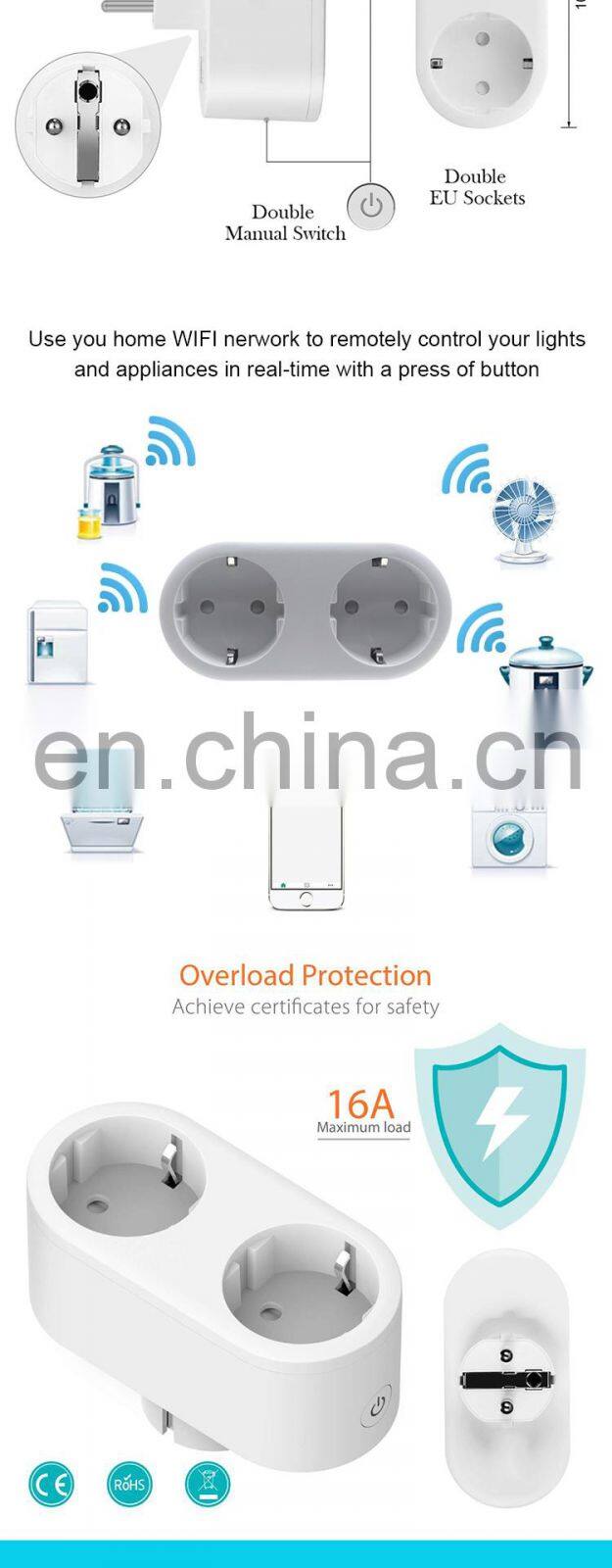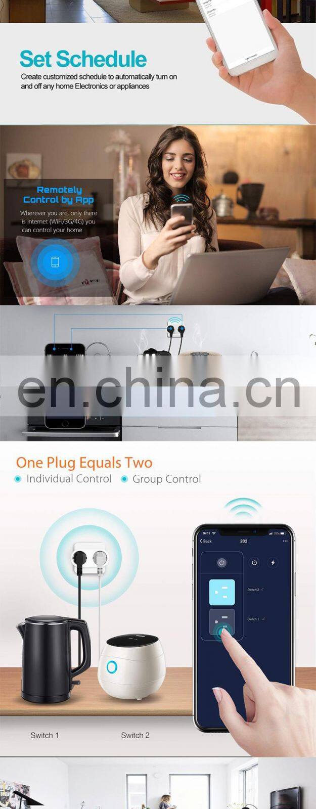 EU Standard OEM Shunt Dual Control Voice Control Timing Switch Smart Life Smart Socket WiFi Smart Socket