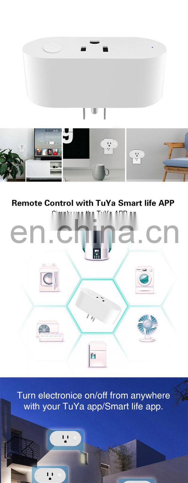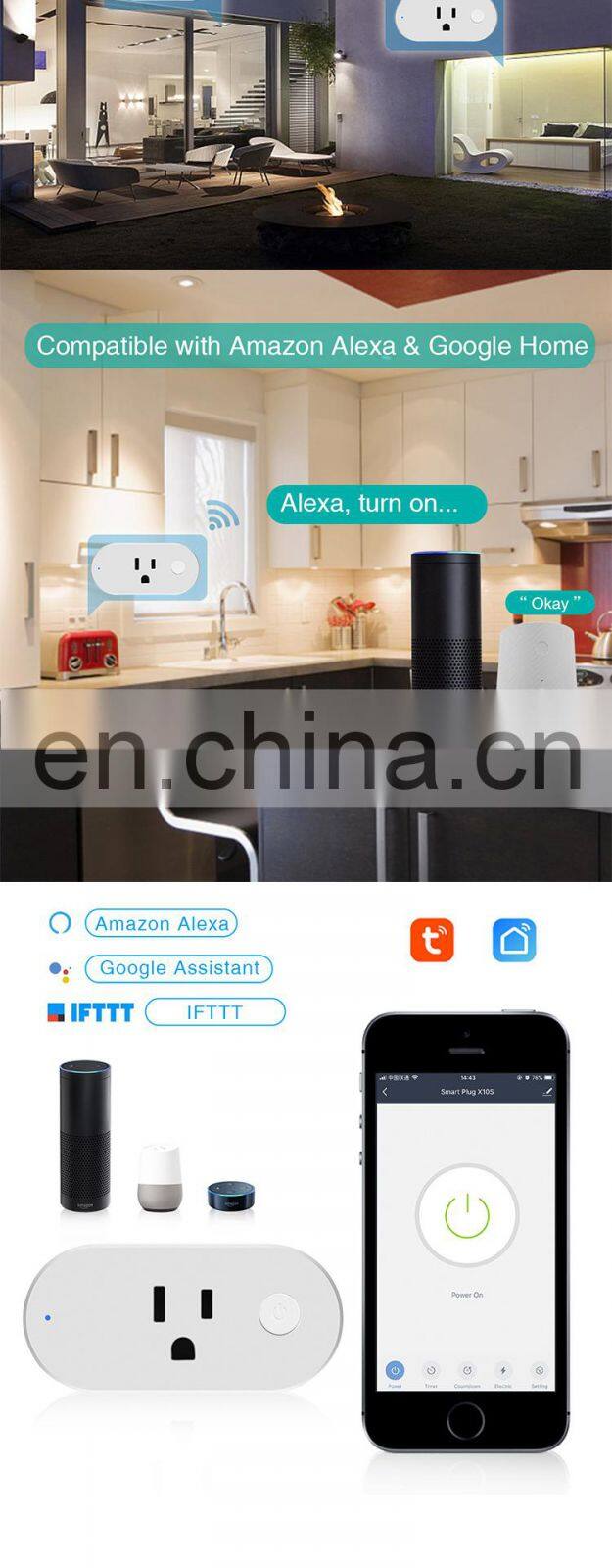 Tuya Smart Socket WiFi Switch Timing Plug Voice Control Socket US Standard Socket With Battery Detection