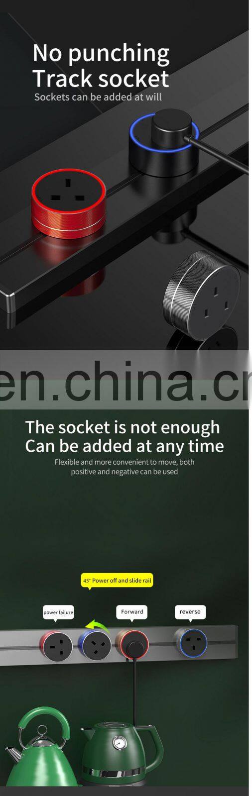 UK Standard Wall-Mounted Surface-Mounted Removable Household Kitchen Socket 1M Hight Power Wiring Track Socket Set