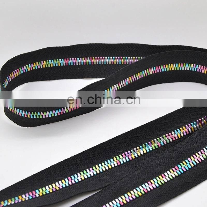 Rainbow nylon colored resin metal decorative rainbow zipper tape |