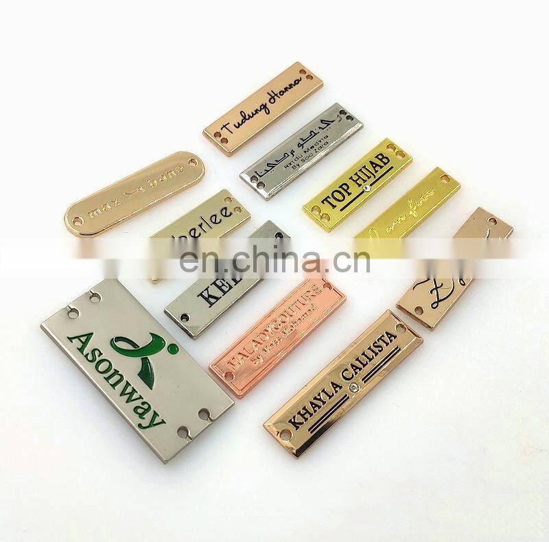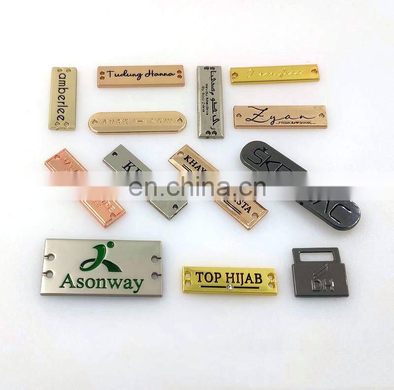 Custom Engraved Gold Metal Logo Tag For Knitted Scarves High Quality Purse Private Plate Engraved Leather Brand Label