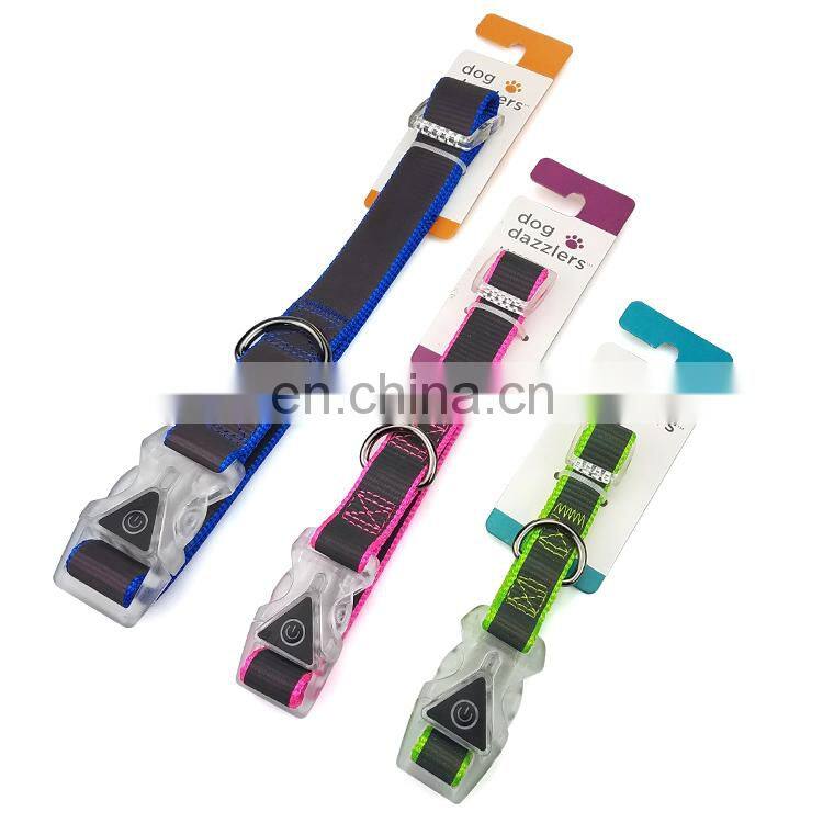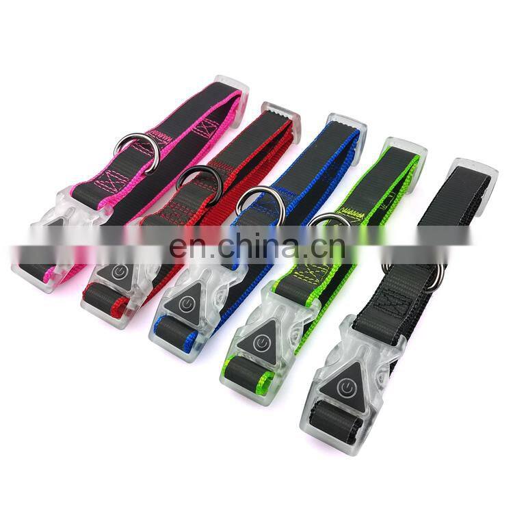 Home > Products > PET COLLAR > Dog Collar With LED Light and Reflective Film Colorful at Night ,durable Collar for Dogs