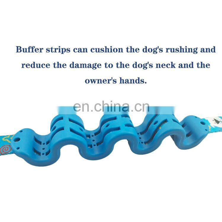 Description | Shock absorbing dog leash is made of polyester webbing ,and special function prevent dog from hurting neck when it rush out somehow. |