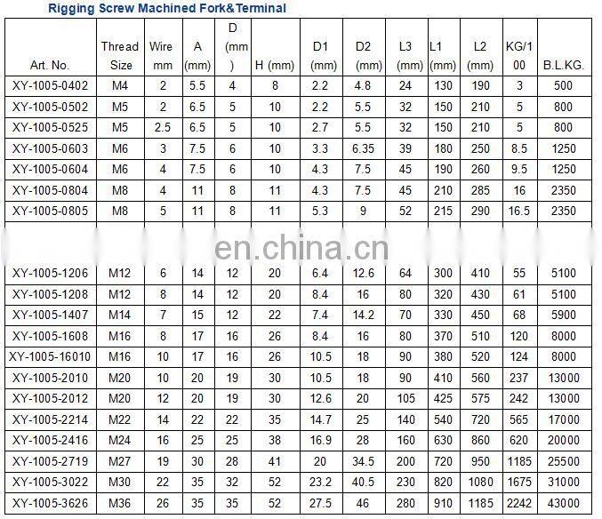 Stainless Steel Rigging Screw Machined Fork&Terminal for Marine, Industrial and Architectural Applications