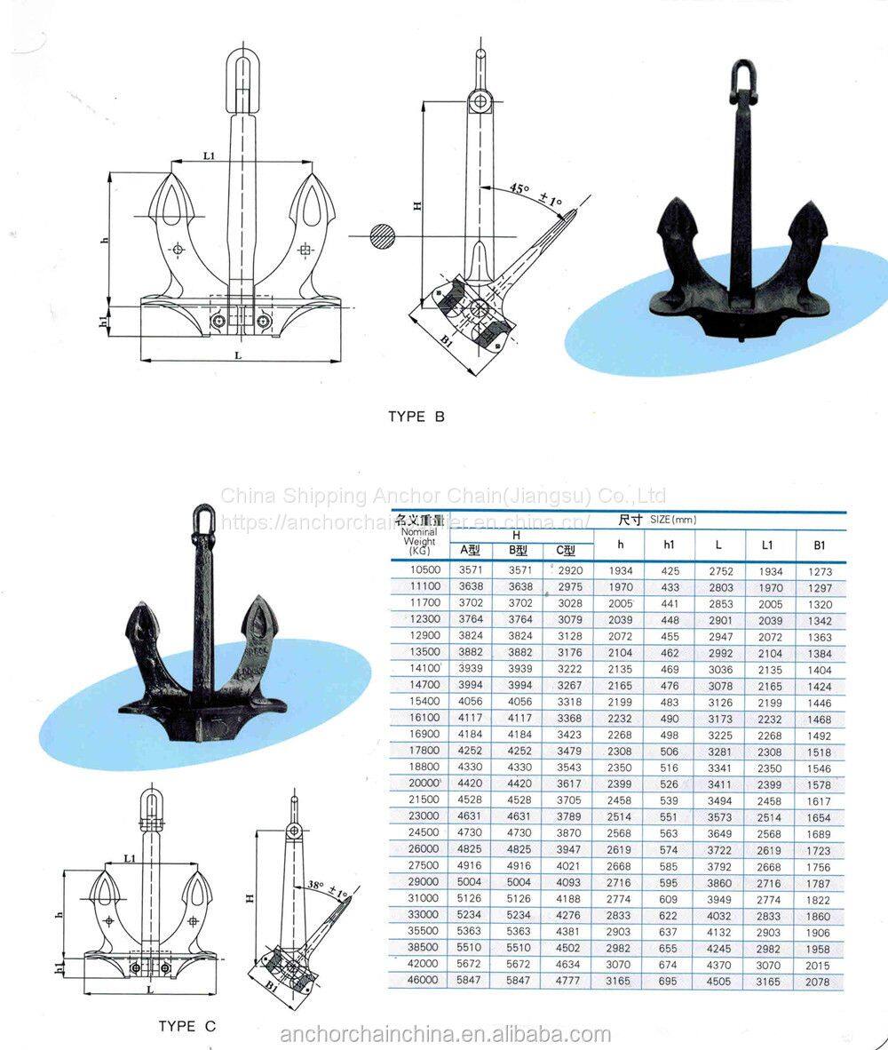 Stockless Anchor: A/B/C Type Hall Anchor, M/SR/95 Type Spek Anchor, TW/N Type Pool Anchor, U.S Navy Anchor,