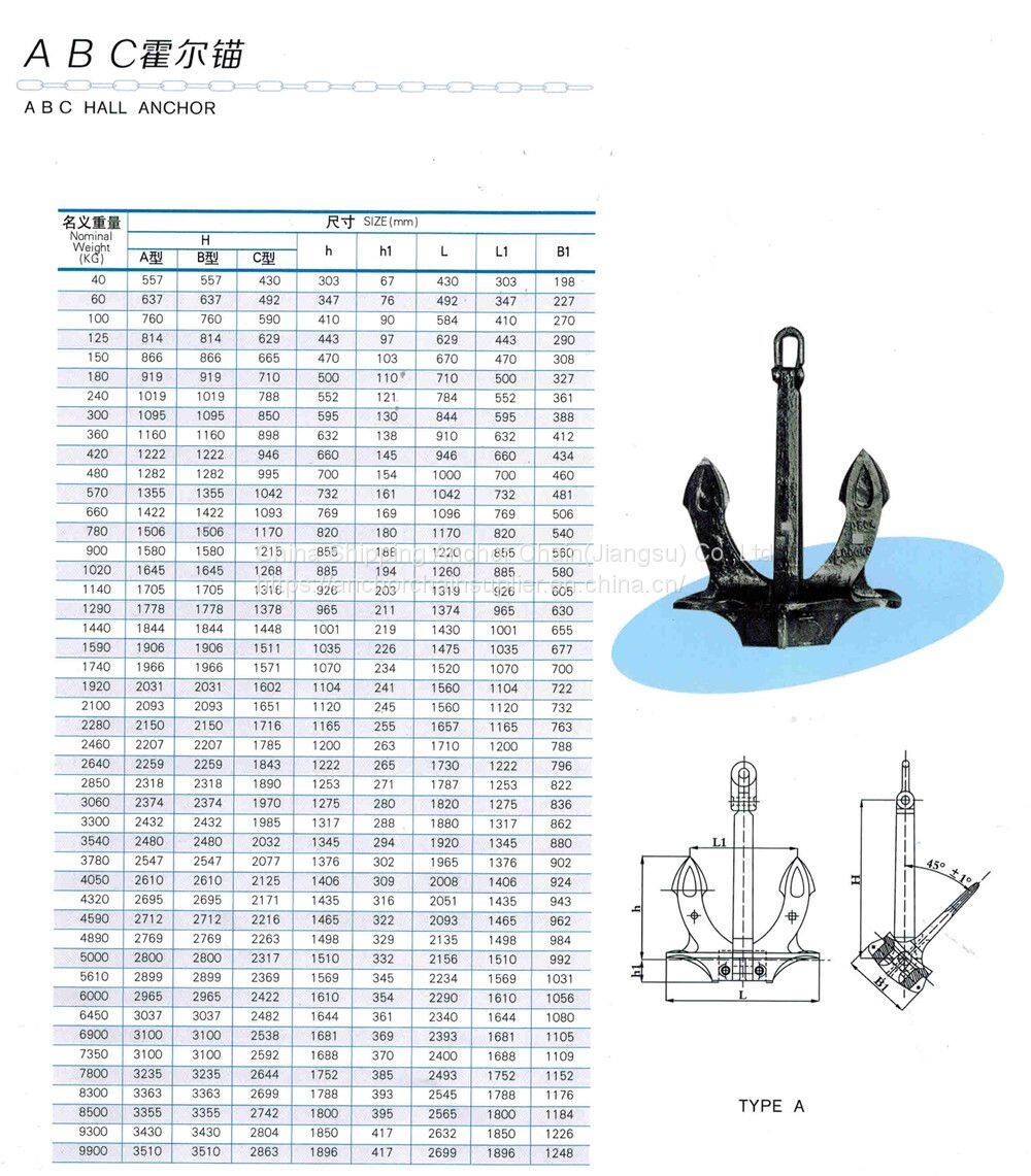 Hall Anchor is widely used Stockless Anchor, There are there types: A / B / C Type Hall Anchor from 50KG to 45000kg