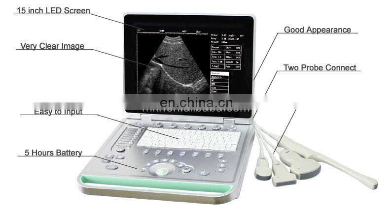 Portable 15 Inch Laptop Medical Ultrasound Instruments BW Ultrasound Machine for Hospital