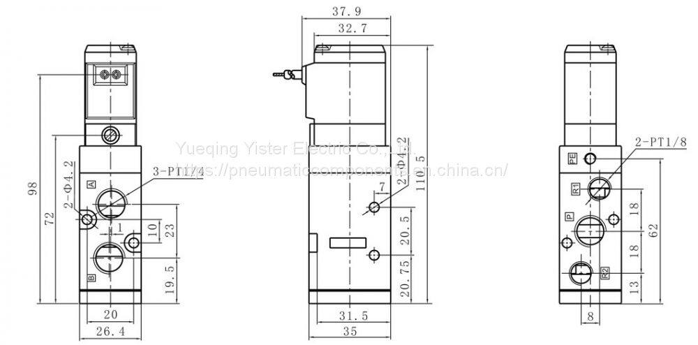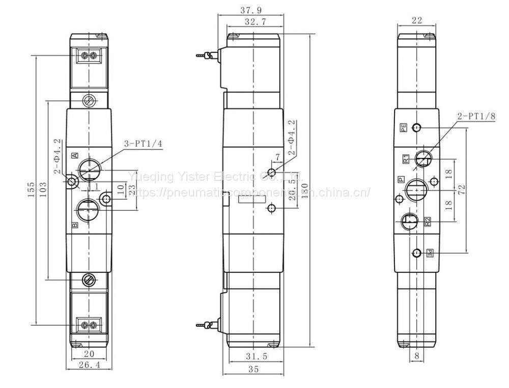 Dimension for SMC standard VF series Solenoid valve