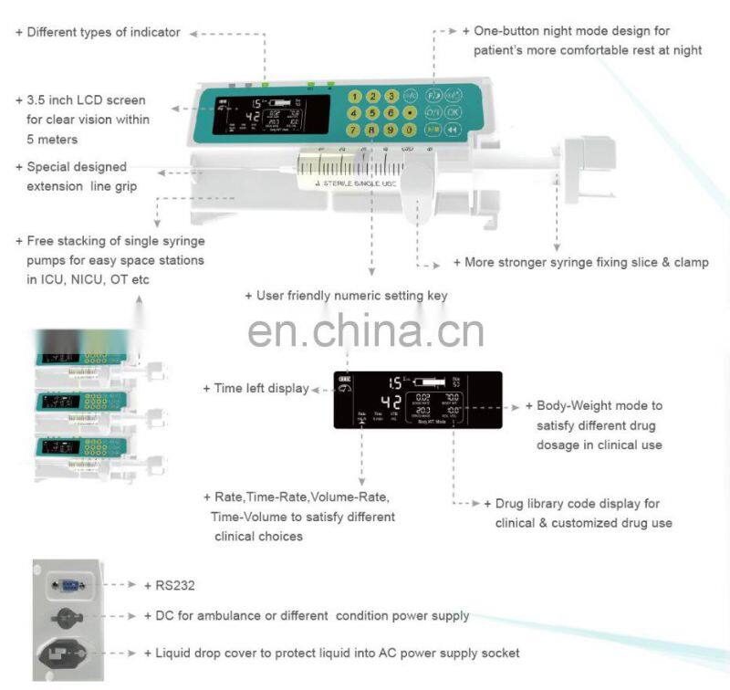 Popular Style Portable 3.5inch LCD Medical Electric Infusion Pump for ICU Operation