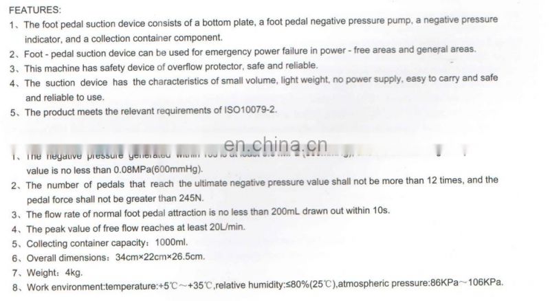 Home > Products > Medical Equipment > Medical Electric Suction Pump Apparatus Vacuum Suction Jar Manual Foot Operated Pedal Phlegm Suction Machine