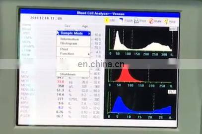 ●3-part differentiation of WBC, 23 parameters, Double channel counter ●Volume measurement by time ,not wrong warning ●Adanced valve technology,long life ● RS232 interface, PC connecting up to 60 samples test per hour ● Electrical resistance for counting and SFT method of hemoglobin ● Low sample consumption : venous 9.8 ul, capillary 9.6 ul, pre-diluted 20 ul for twice testing one time ● 8.4” color TFT, Windows interface all testing parameter displayed simultaneously ● Windows operation system graphical buttons mouse and keyboard operation ● Double convolution and intelligent fitting ● Automatic diluting , Mixing , rinsing and clog clearing ● Automatically sample probe cleanning (inside and outside) ● Large storage capacity: up to 10,000 samples +3 histograms ● Internal thermal-sensitive printer or external printer. ● RS232 interface, PC connecting