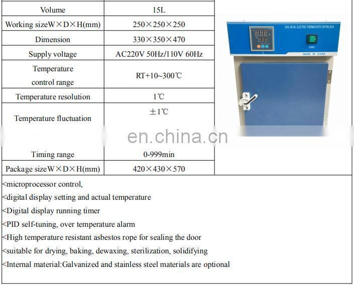 CE ISO Desktop Small Mini Dryer Oven 15L Thermostat Drying Oven for Lab