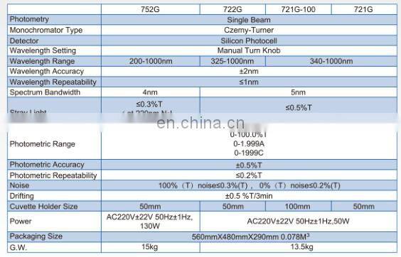 721 Wholesale Cheap Single Beam 722G LCD Display Ultraviolet / Visible UV VIS Spectrophotometer