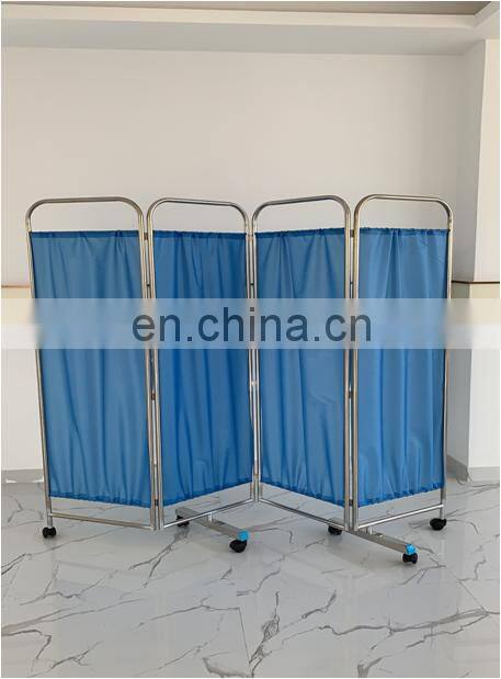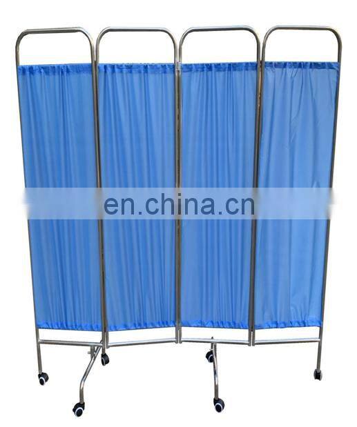 Hot Sale Stainless Steel Hospital Mobile Screen 4 Folding Partition Medical Ward Screen