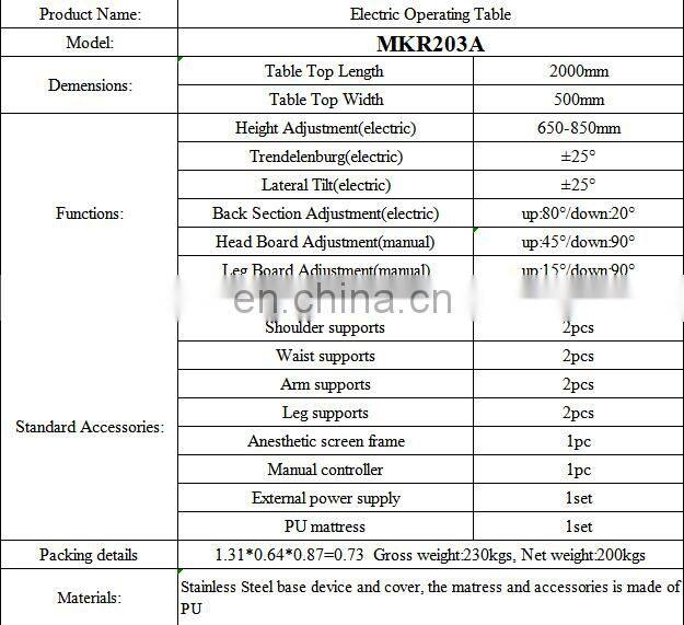 High Quality Electrical Operation Bed Surgical Table Electric Operating Table
