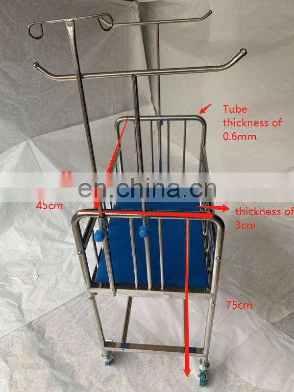 Stainless Steel Type Medical Baby Bed With Mattress 3cm for Hospital and Clinic Use