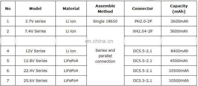 If you need to customized other series battery packs, please Send Us An Inquiry or Email with your mailing address, we will reply you within half an hour, thank you very much !