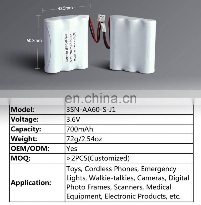 Customized NIMH AA 3.6V 700mah Rechargeable Battery Pack For Cordless Phone