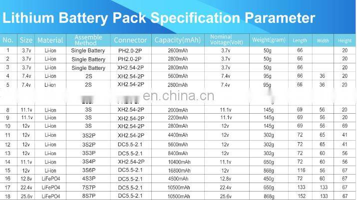 Rechargeable li-ion 2000mAh 11.1v lithium ion 18650 battery pack with connector plug for Airplane RC Helicopter Drone