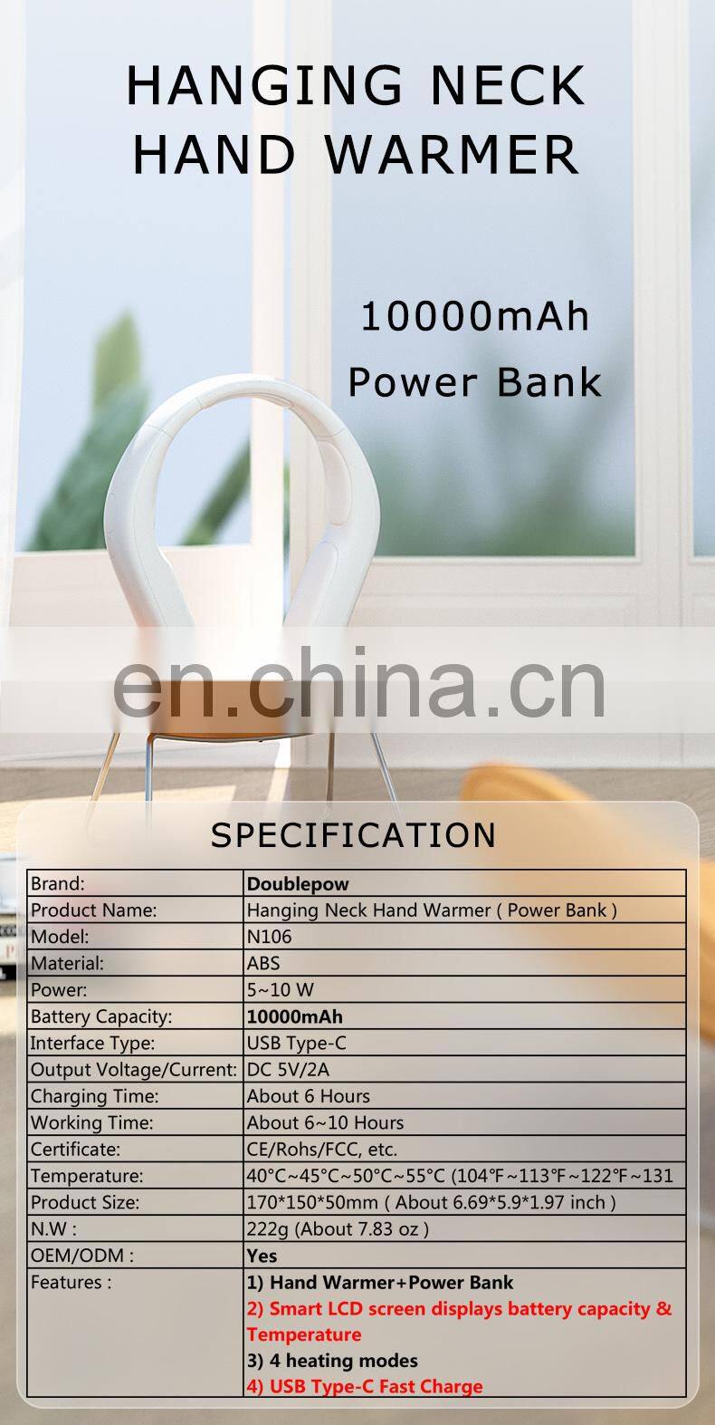 New Arrival Mini Power Bank 10000mAh Handing Neck Heater Real-time Digital Display Hand Warmer Portable USB Neck Heater